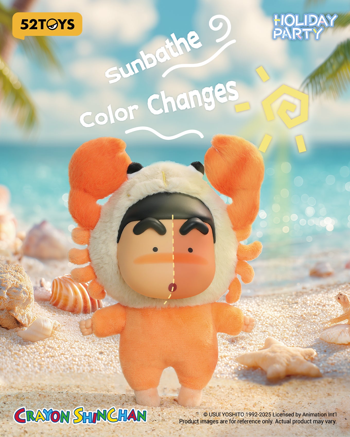Vacation mode: ON. In the Holiday Party Series, Shin-chan heads out on a sunny getaway, ready for fun, food, and freedom. These vinyl-plush keychains are perfect for hanging on your bag, and here’s the fun twist: Shin-chan’s vinyl face actually darkens under sunlight, giving him a realistic “sun-tanned” holiday look. Cute, clever, and full of vacation vibes, every box is a little trip of its own.